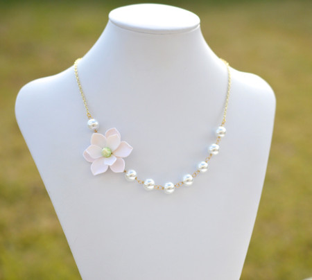 Oscar Asymmetrical Necklace in White Magnolia. FREE EARRINGS